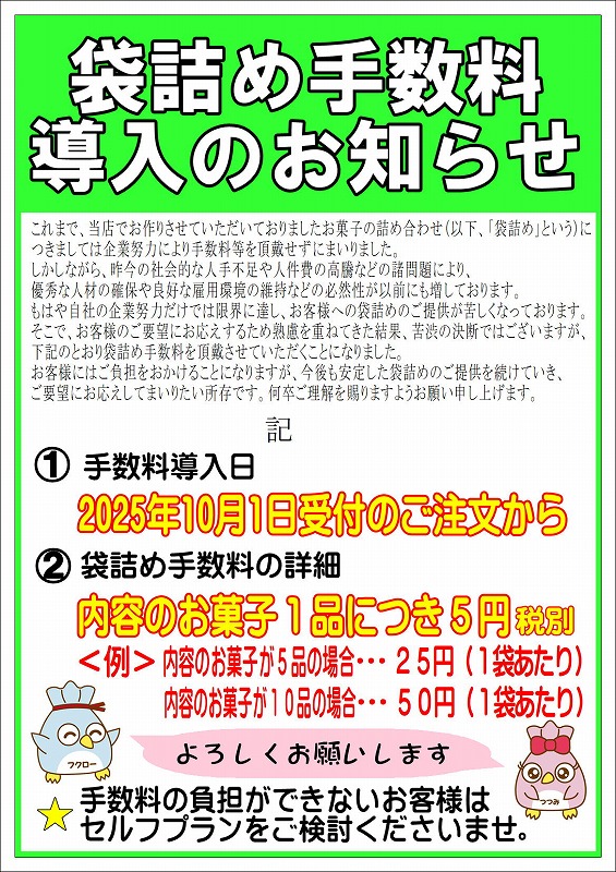 袋詰め手数料導入のお知らせ 詳しくはこちら
