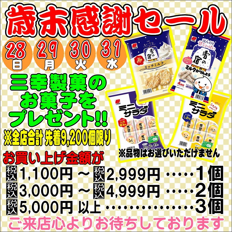 歳末感謝セール!12/28~31の4日間、今年一年の感謝を込めてお菓子をプレゼント‼